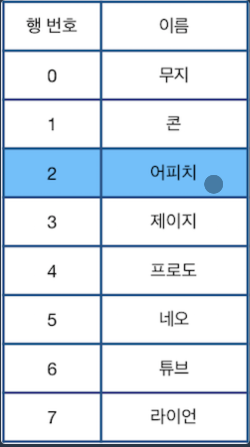 - Node는 행의 index, 해당 행 이전 행의 index(prev), 다음 행의 index(next)를 갖는다.