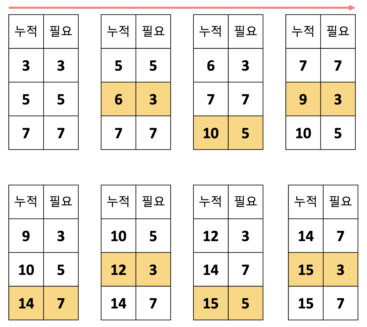 - 스텝별로 실시간 누적 작업시간을 담는 우선순위 큐를 활용한다