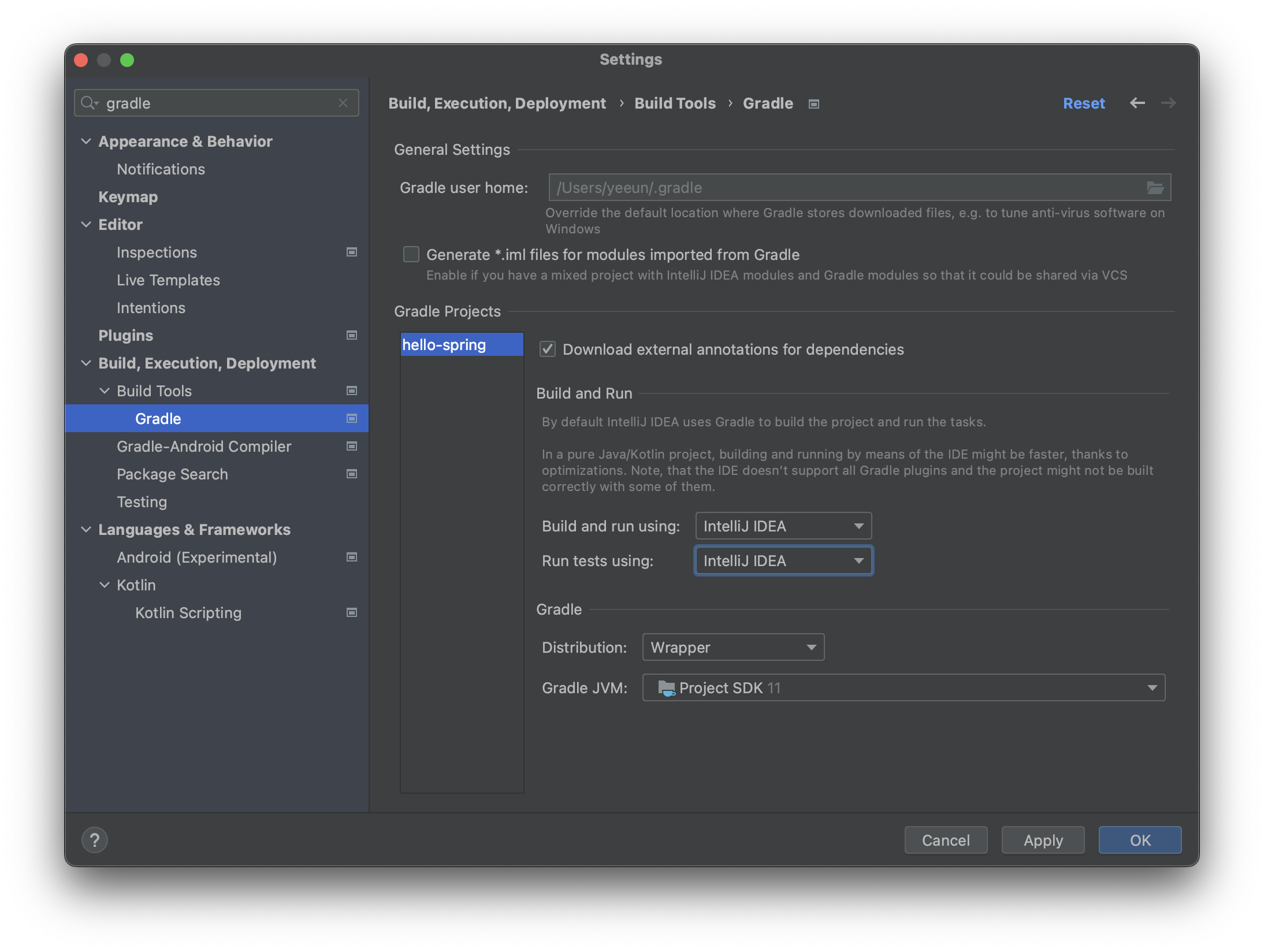 Settings > Build, Execution, Deployment > Build Tools > Gradle