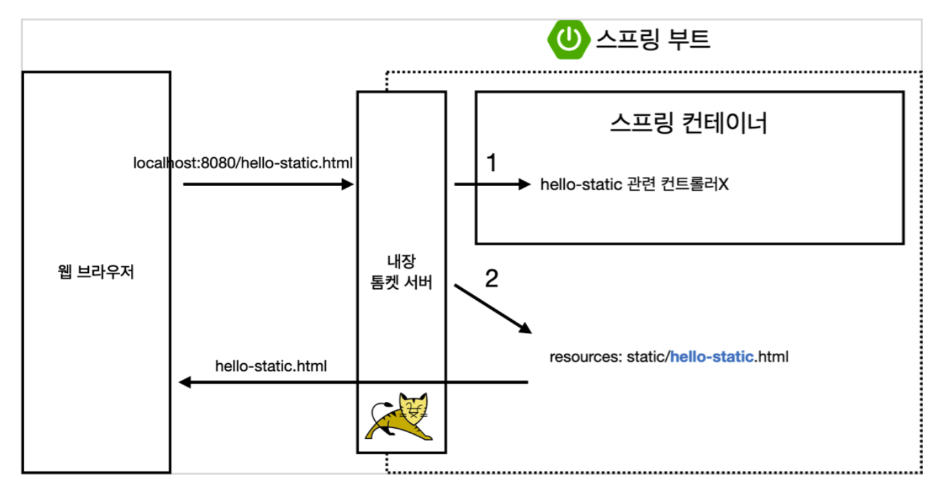 - 웹 브라우저에서 도메인(localhost:8080/hello-static.html)을 입력
