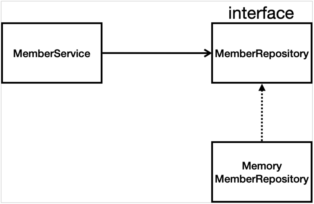 - 아직 데이터 저장소가 선정되지 않아서, 인터페이스로 구현 클래스를 변경할 수 있도록 설계한다