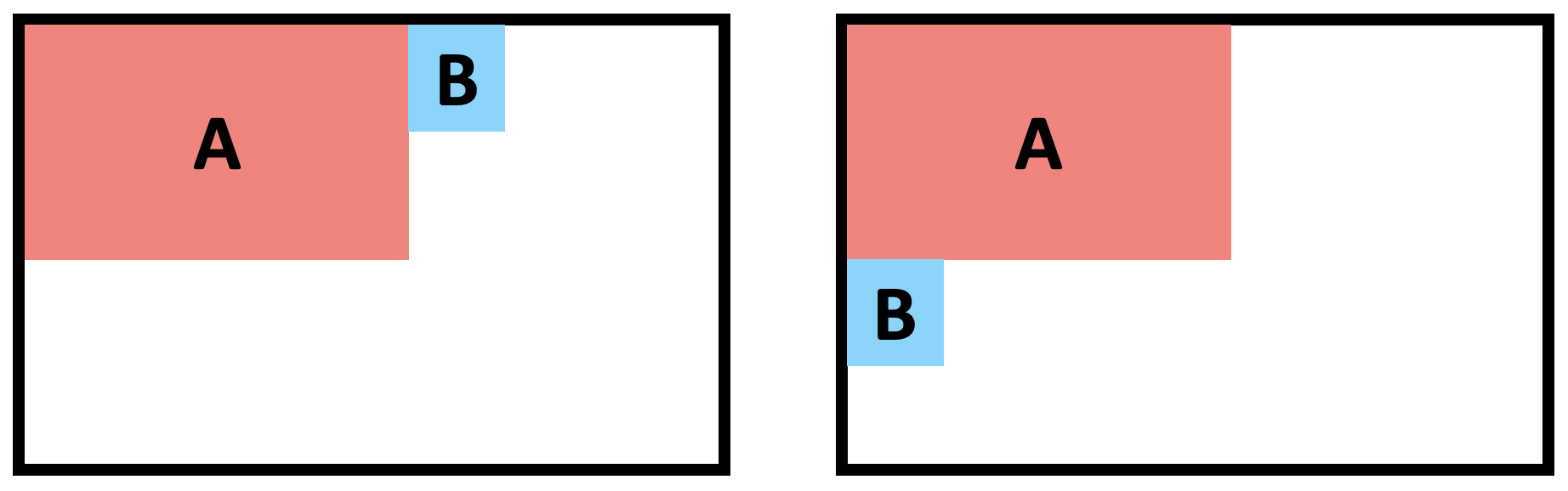 - 가로 또는 세로로 붙일 수 있다는 점을 파악했으면, 그 다음으로 주의할 점은 스티커가 직사각형이란 점이다. 가로,세로 길이가 다르므로 A와 B스티커를 나란히 붙인다는건 총 4가지 모양이 나올 수 있다.