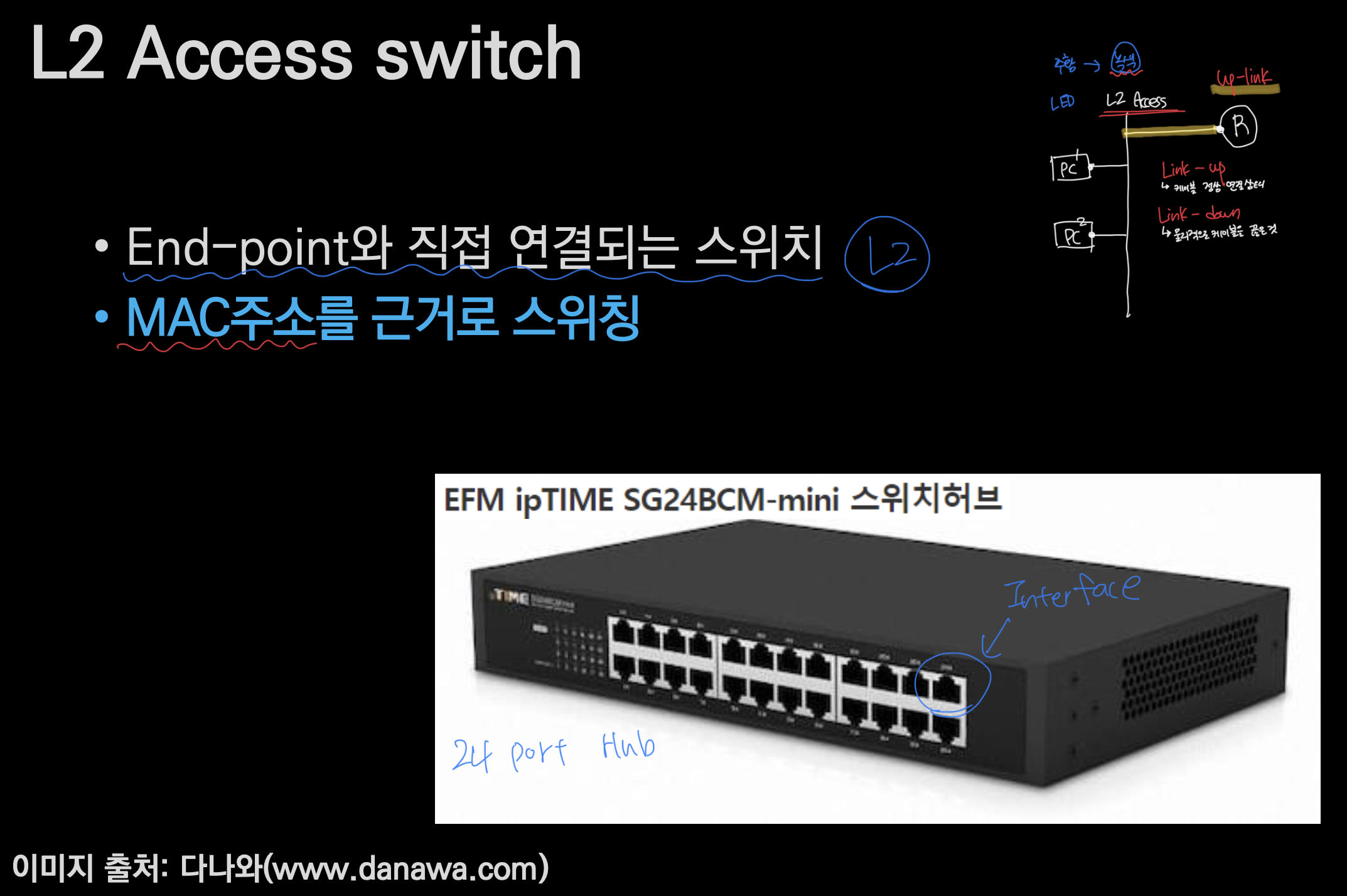 - 단말기(End-point)와 직접적으로 연결되는 스위치